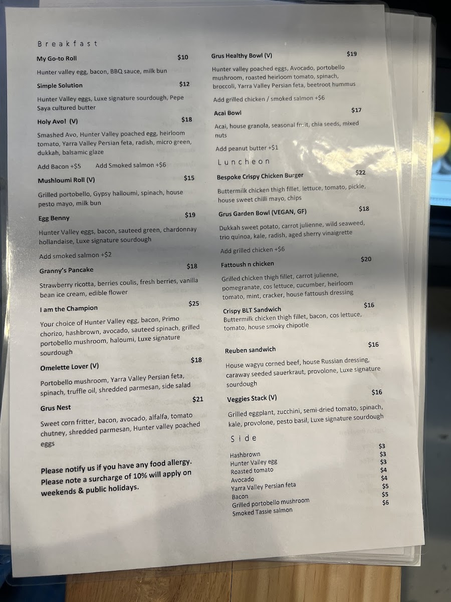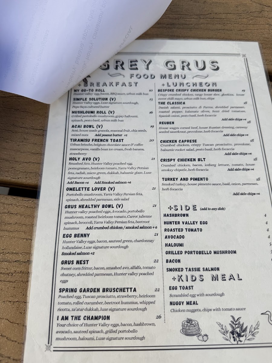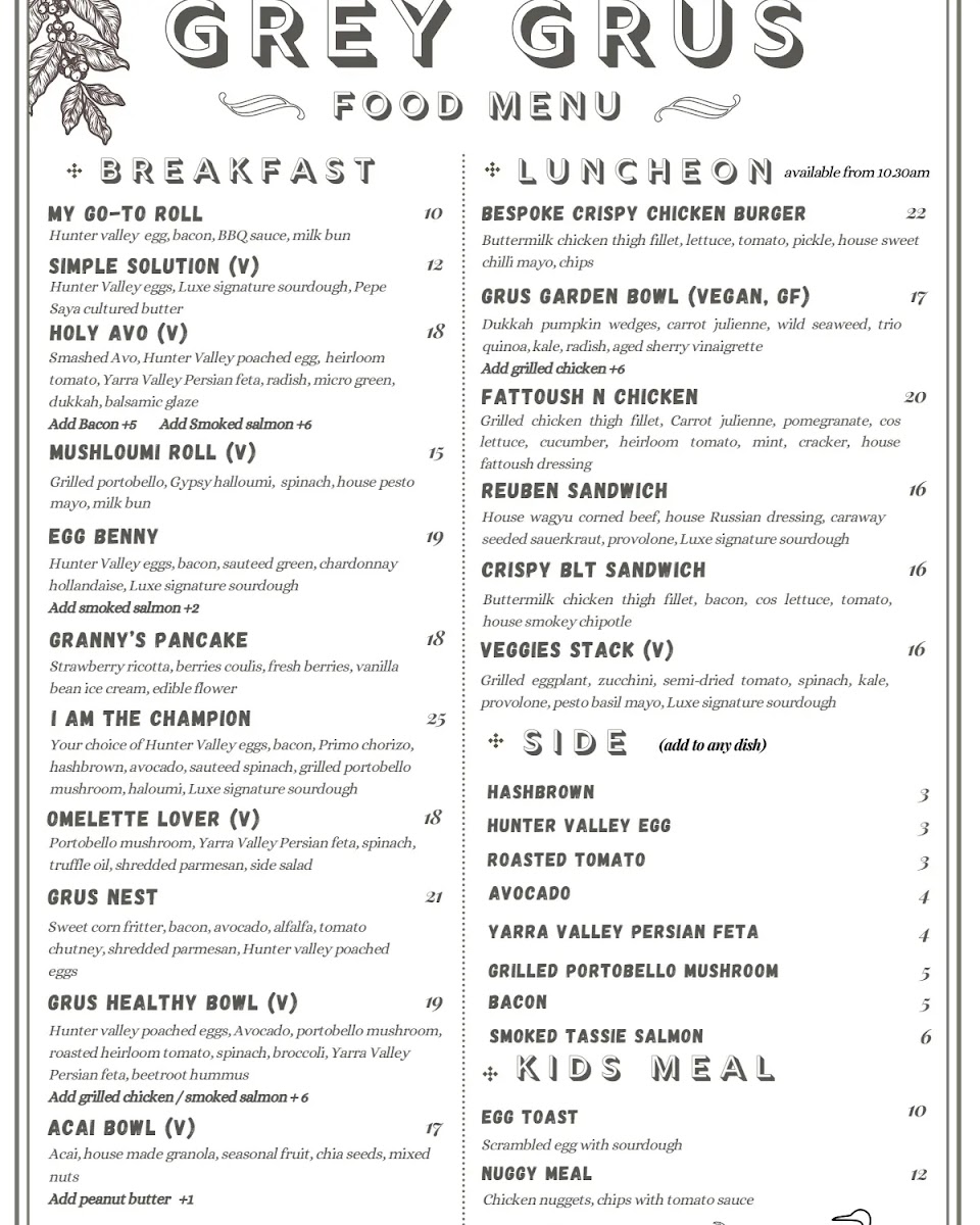 Welcome to Grey Grus Cafe, a charming spot nestled in Rozelle, Australia. This cafe features an enticing menu that caters to all-day breakfast lovers and coffee aficionados alike. Delight in the My Goto Roll, pairing Hunter Valley egg with bacon in a soft milk bun, or savor the decadent flavors of the Mushloui Roll with grilled portobello and gypsy halloumi. Don't miss the vibrant Acai Bowl for a refreshing start to your day. Customers rave about the quality of the food, especially the indulgent Reuben sandwich, celebrated for its tender wagyu beef and generous servings. Whether you prefer the bustling indoor vibe or the serene outdoor patio, Grey Grus Cafe offers a cozy atmosphere to enjoy your meal. While service can be a bit slow during busy hours, the overall charm and delicious offerings make this a must-visit destination for brunch enthusiasts.